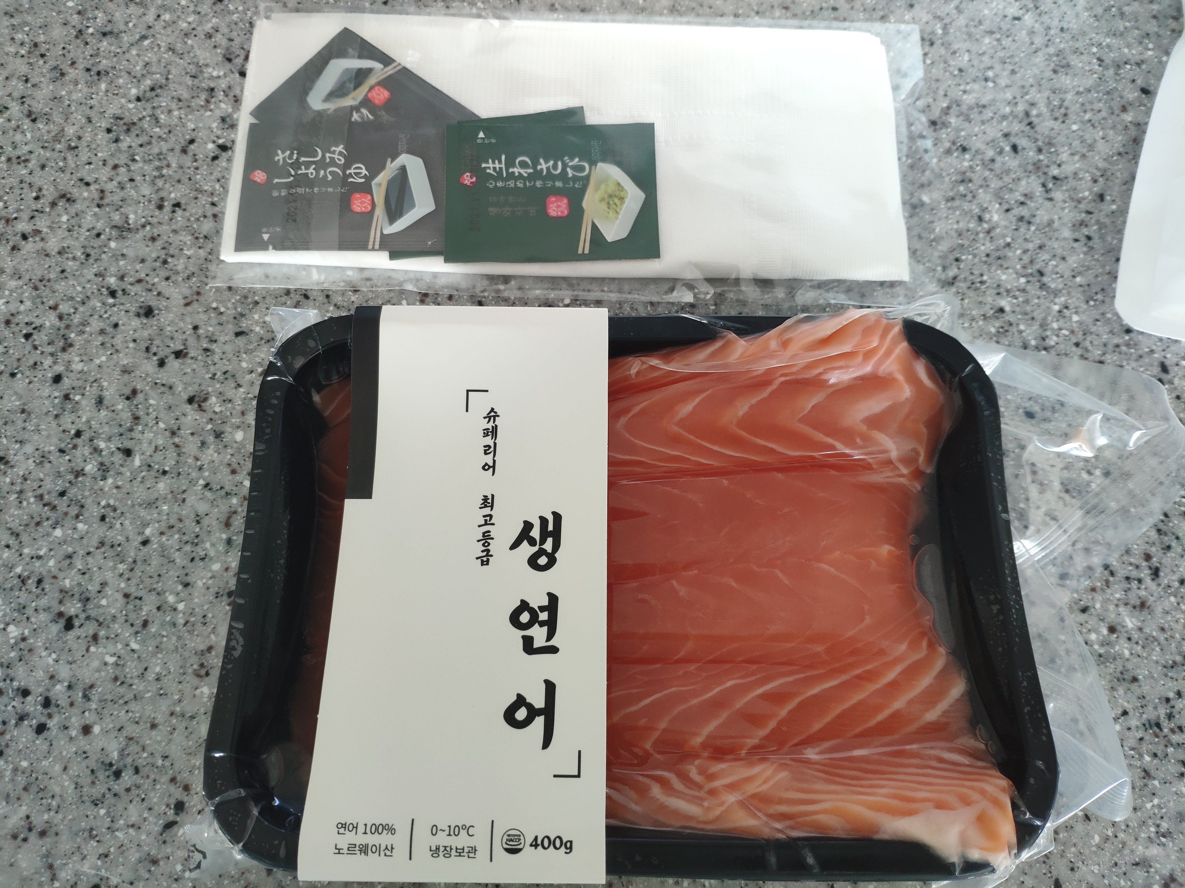 전날 오랜만에 이마트에서 장 보면서 산 회와 소주를 먹고