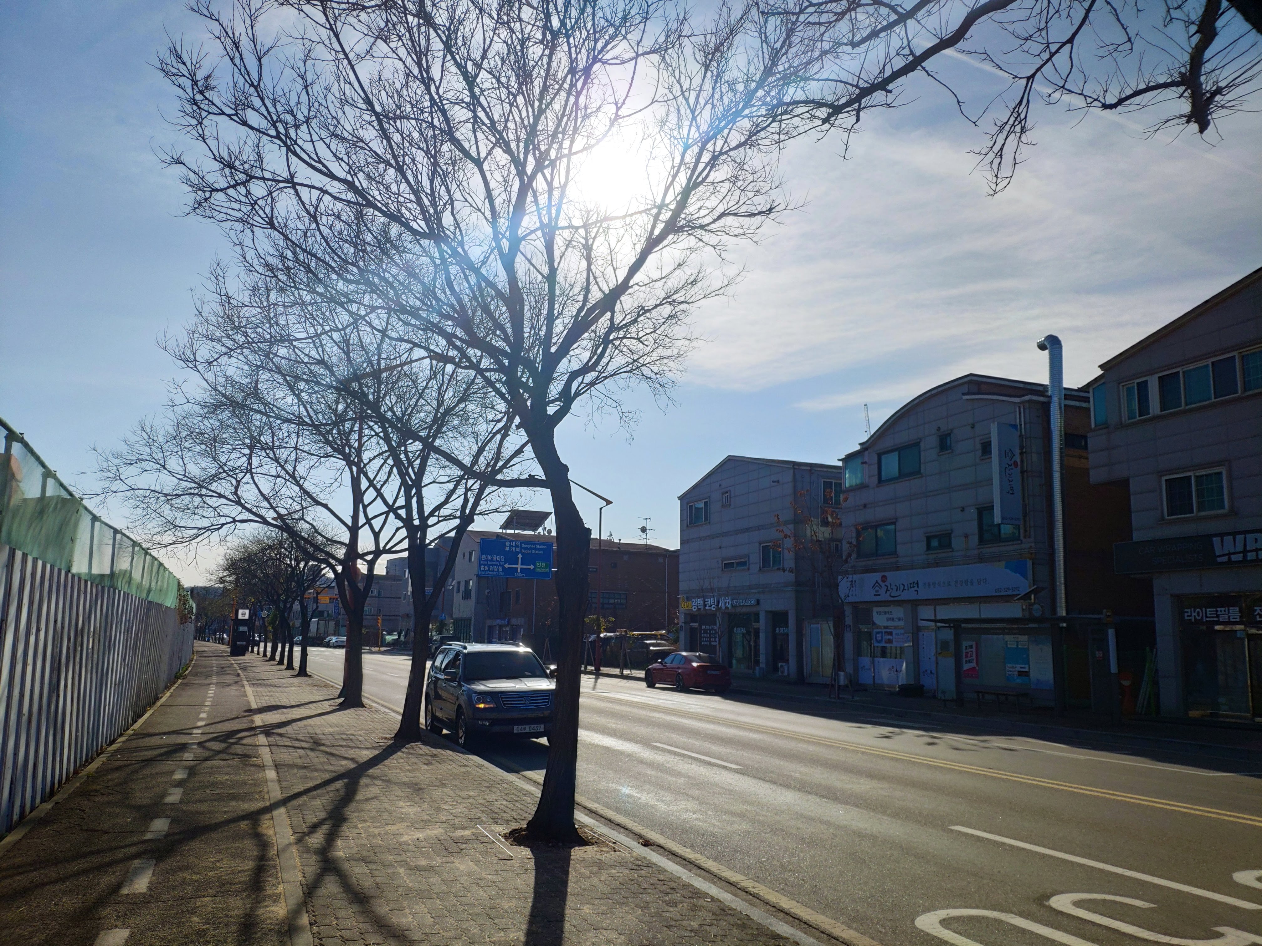 아파트쪽 큰 길로 나오면 사람들이 하나 둘 씩 보인다.