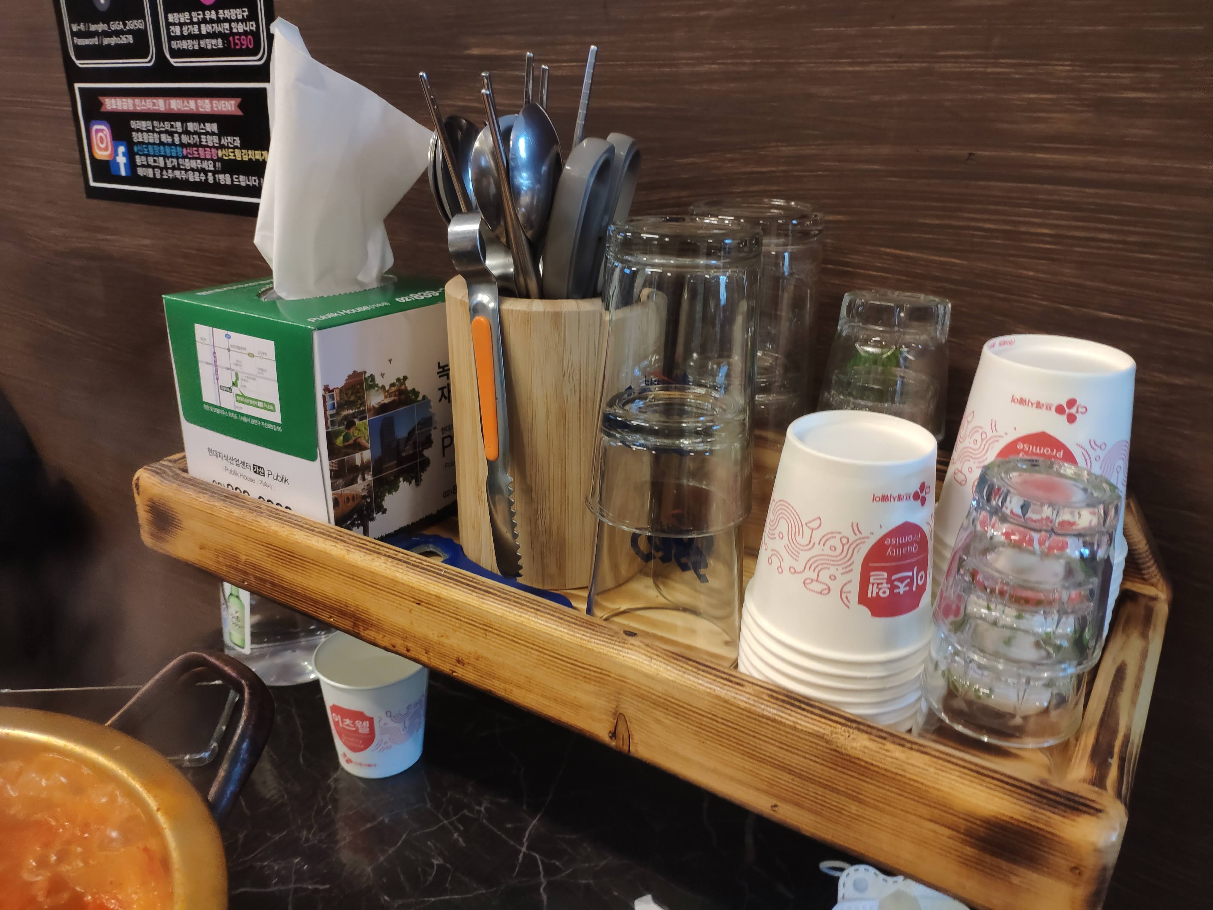 수저, 컵, 술잔, 티슈 등은 대부분 셀프입니다.