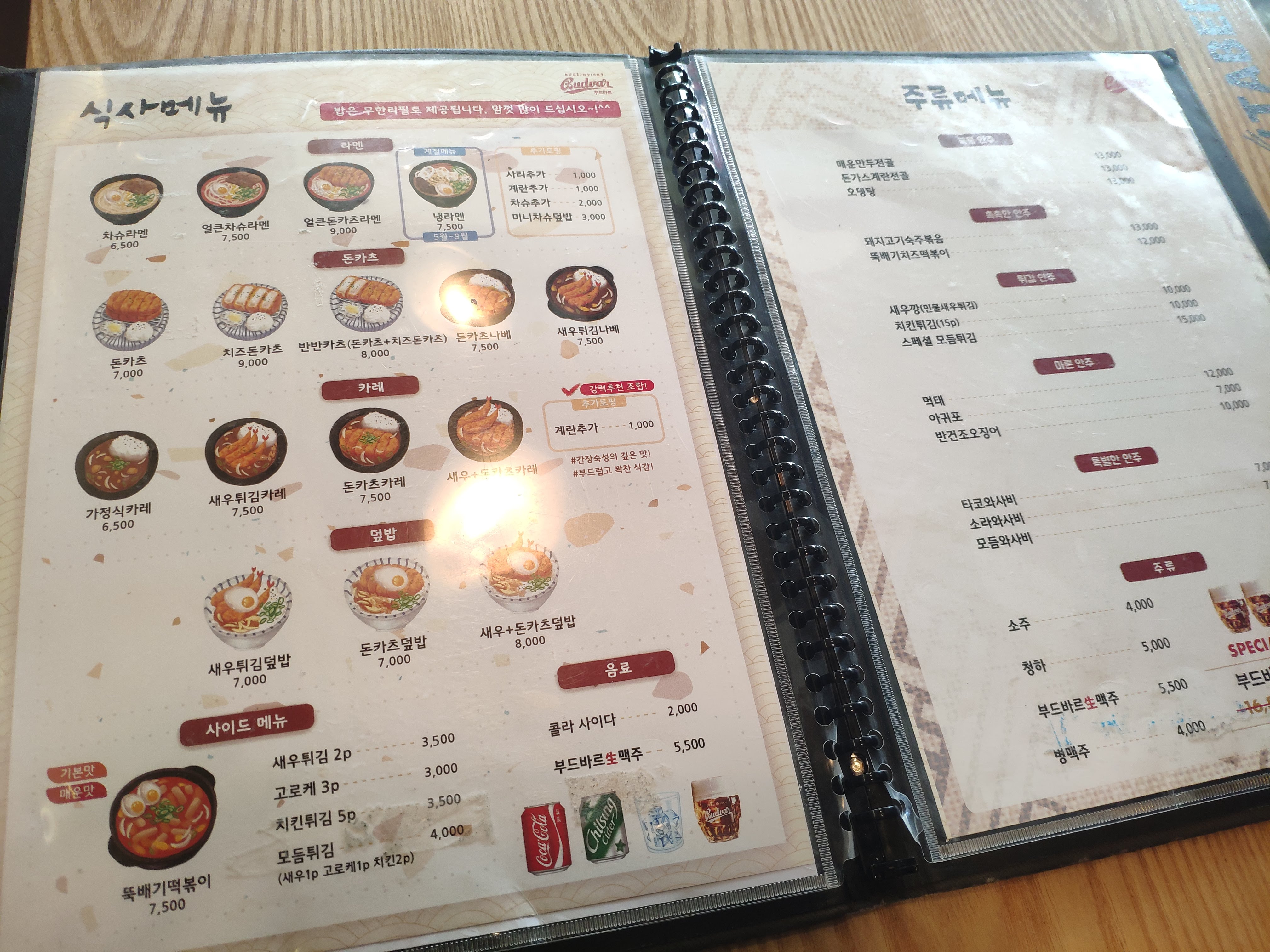크게 라멘, 돈카츠, 카레, 덮밥 요렇게있고