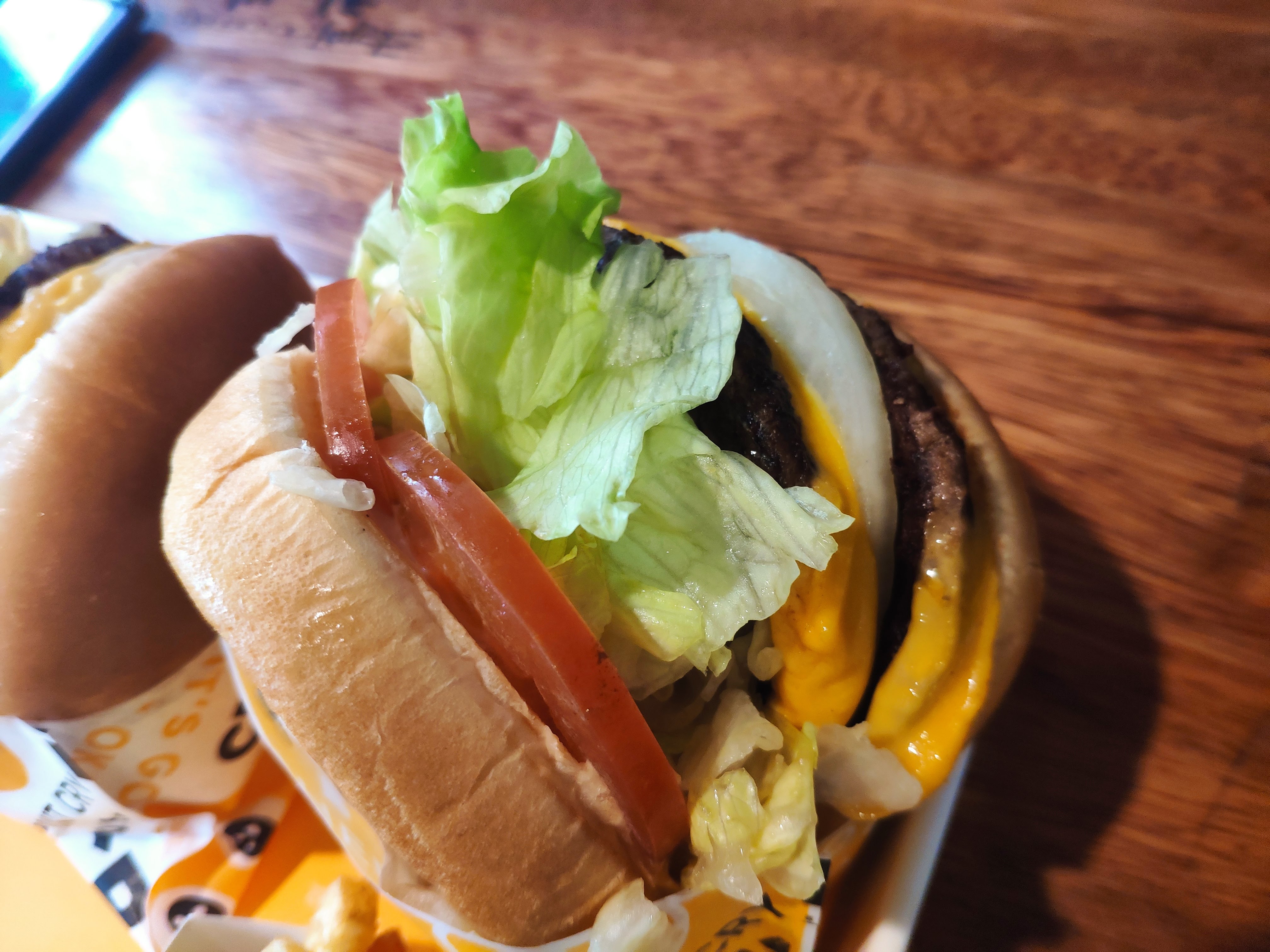 딱 기본 재료들인 토마토, 양상추, 패티, 치즈, 양파로만 꽉꽉 채워져 있네요.
