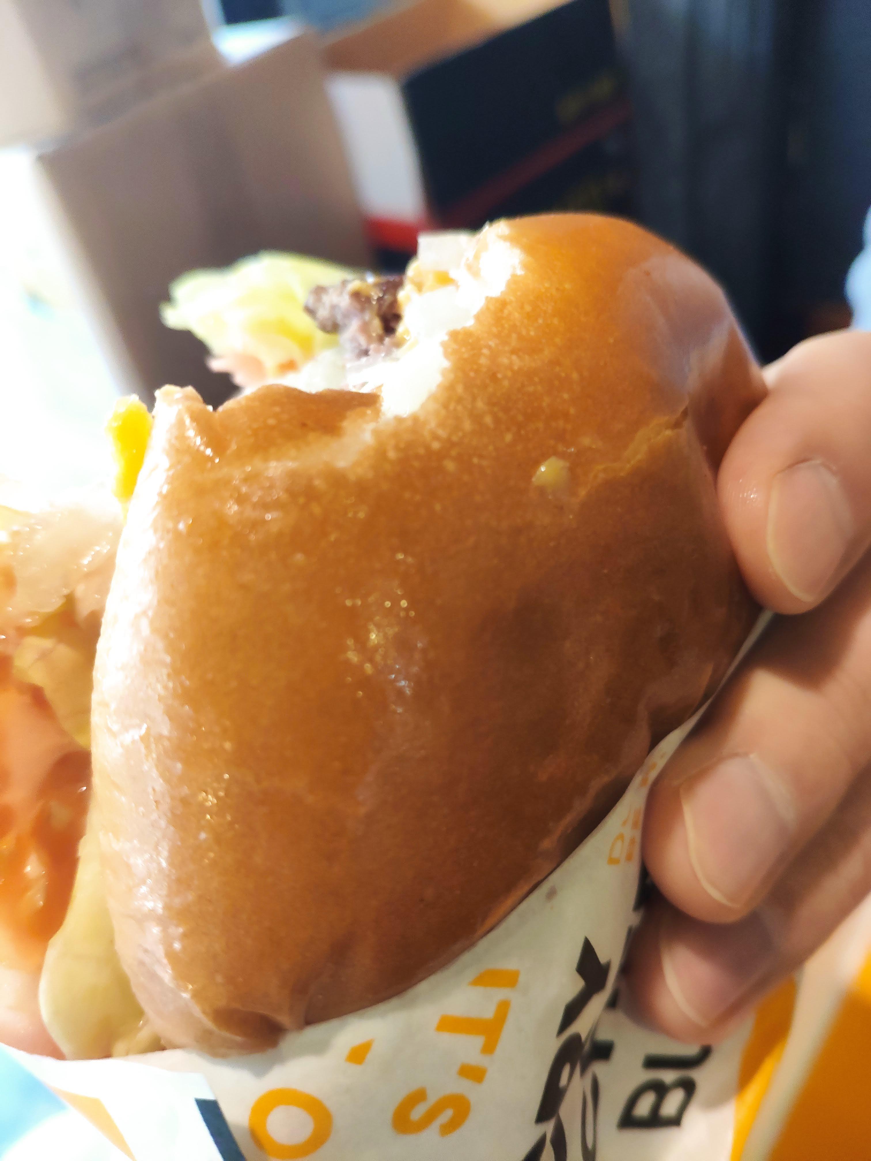 부천 크라이치즈버거는 번 윗부분이 코팅된것 처럼 맨들맨들~